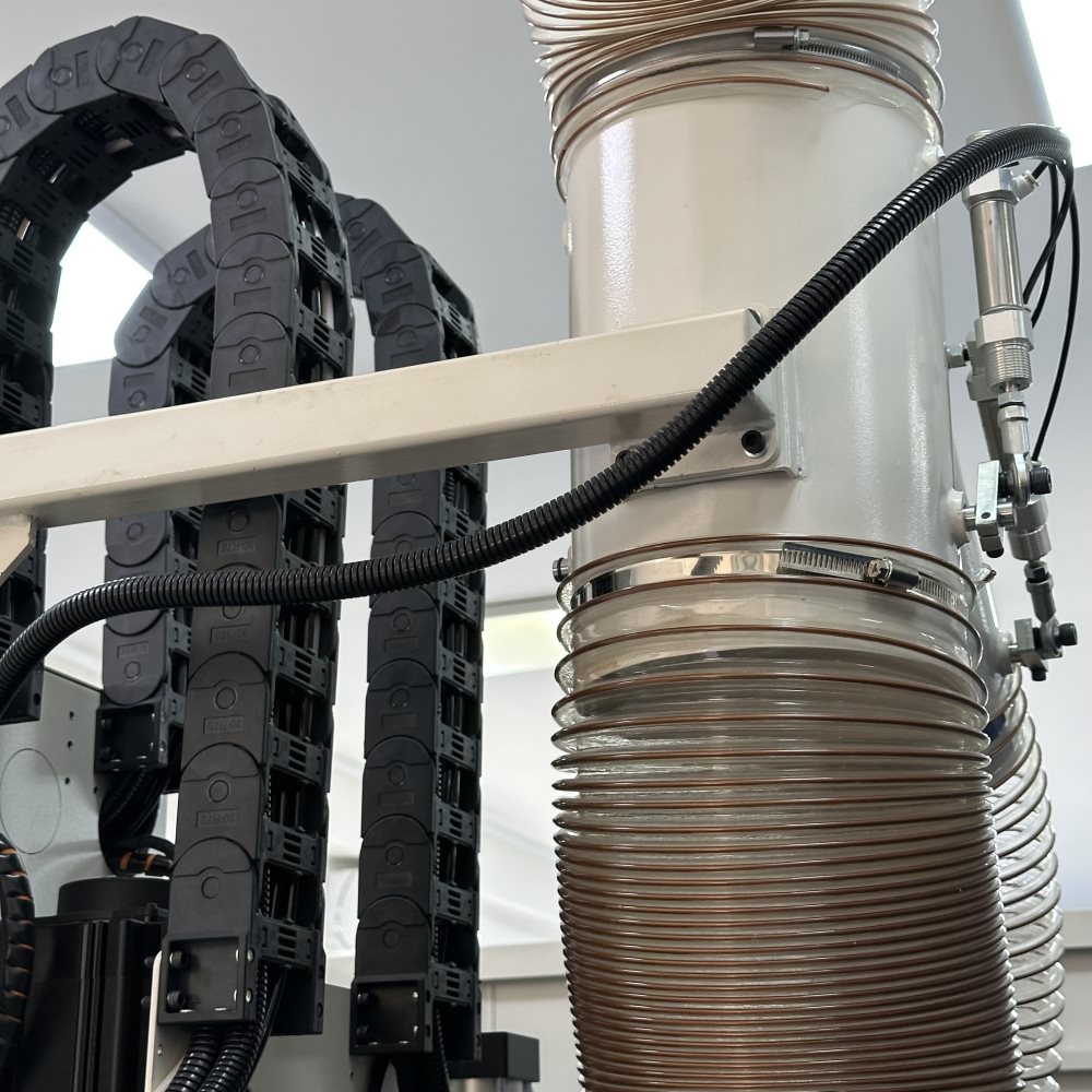 Teknologjia inovative e makinës për shpim të saktë dhe të shpejtë me gjashtë anë dhe mundësinë për shpim të dy pjesëve njëkohësisht. Kjo makinë është kryesisht e përdorur për shpim dhe gdhendje të materialeve në formë të pllakës. Ajo mund të prodhojë sisteme të ndryshme lidhëse ose nyje për mobilje, si dhe shpime për dizajne të ndryshme, tipël, ekscentrikë, vrimosje, kanale për lesonit dhe shumë funksione të tjera. Mund të identifikojë automatikisht kodet e pjesëve të punës duke skanuar etiketat me barkod pa tel. Ngarkimi dhe shkarkimi automatik i copave të punës mundësohet duke përdorur një tavolinë transporti në pjesën e pasme të makinës.